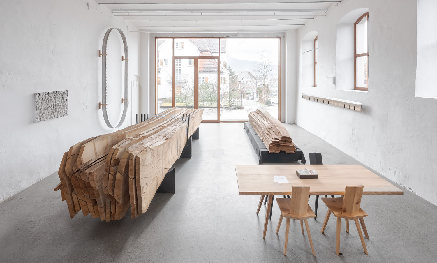 Materialschwerpunkt unserer Projekte ist Massivholz. Nach Möglichkeit verarbeiten wir heimische Hölzer. Rund 50 % davon beziehen wir direkt aus der Region, lassen sie nach unseren Vorgaben einsägen, lagern sie in unseren eigenen Räumen und trocknen sie vor der Verarbeitung entsprechend dem jeweiligen Verwendungszweck.