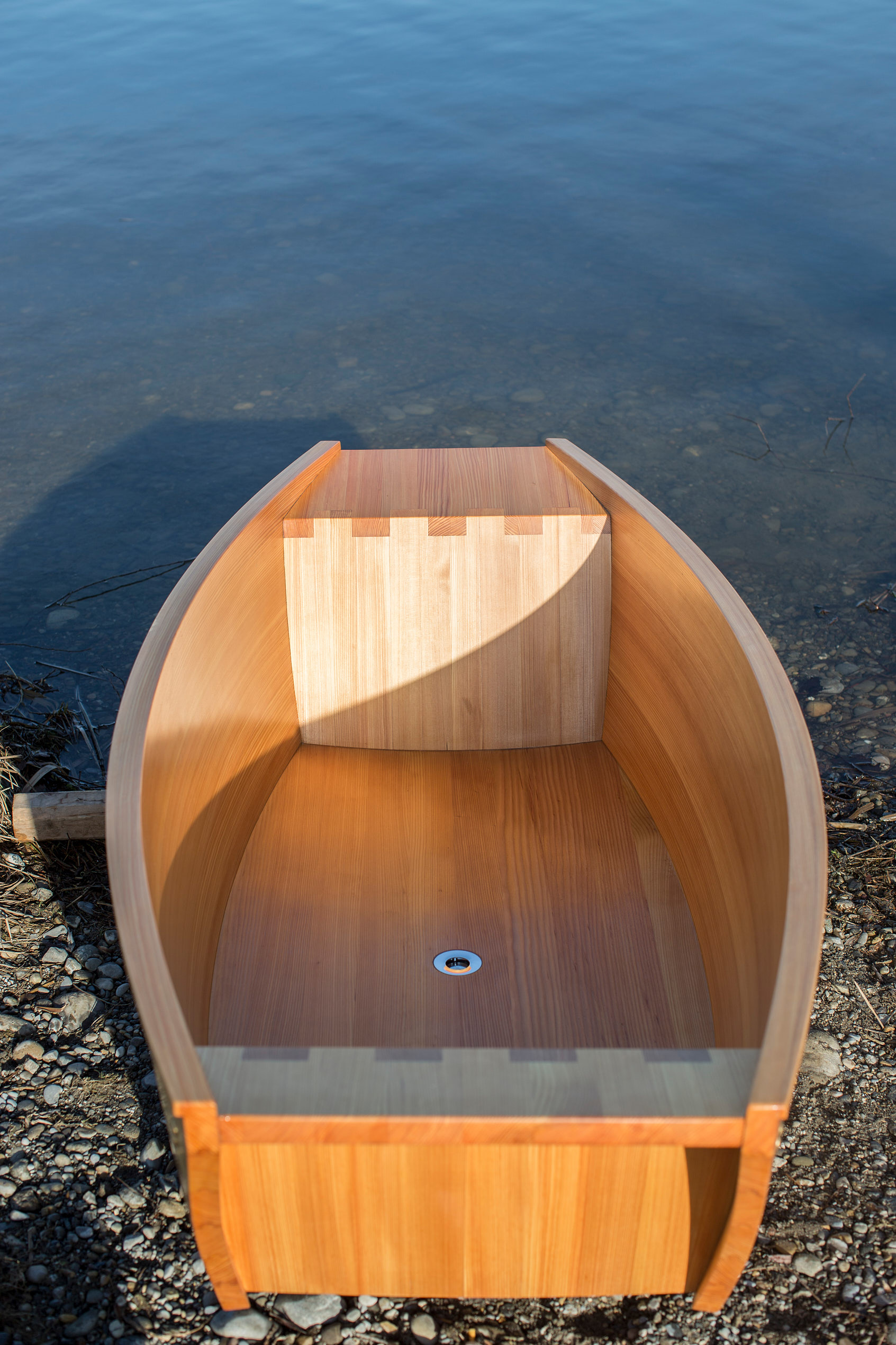 Eine Holzwanne ist handwerklich betrachtet nicht weit vom Boot entfernt. Beide müssen Wasser standhalten, beide leben von gebogenen Hölzern und präzisen Fugen. Genau deshalb haben wir uns für dieses Projekt mit dem Bootsbauer Simon Hofer zusammengetan. Gemeinsam überlegten wir, wie sich eine Holzwanne in Lärche konstruieren lässt ohne Stahlteilen eine bestimmende Rolle einzuräumen.