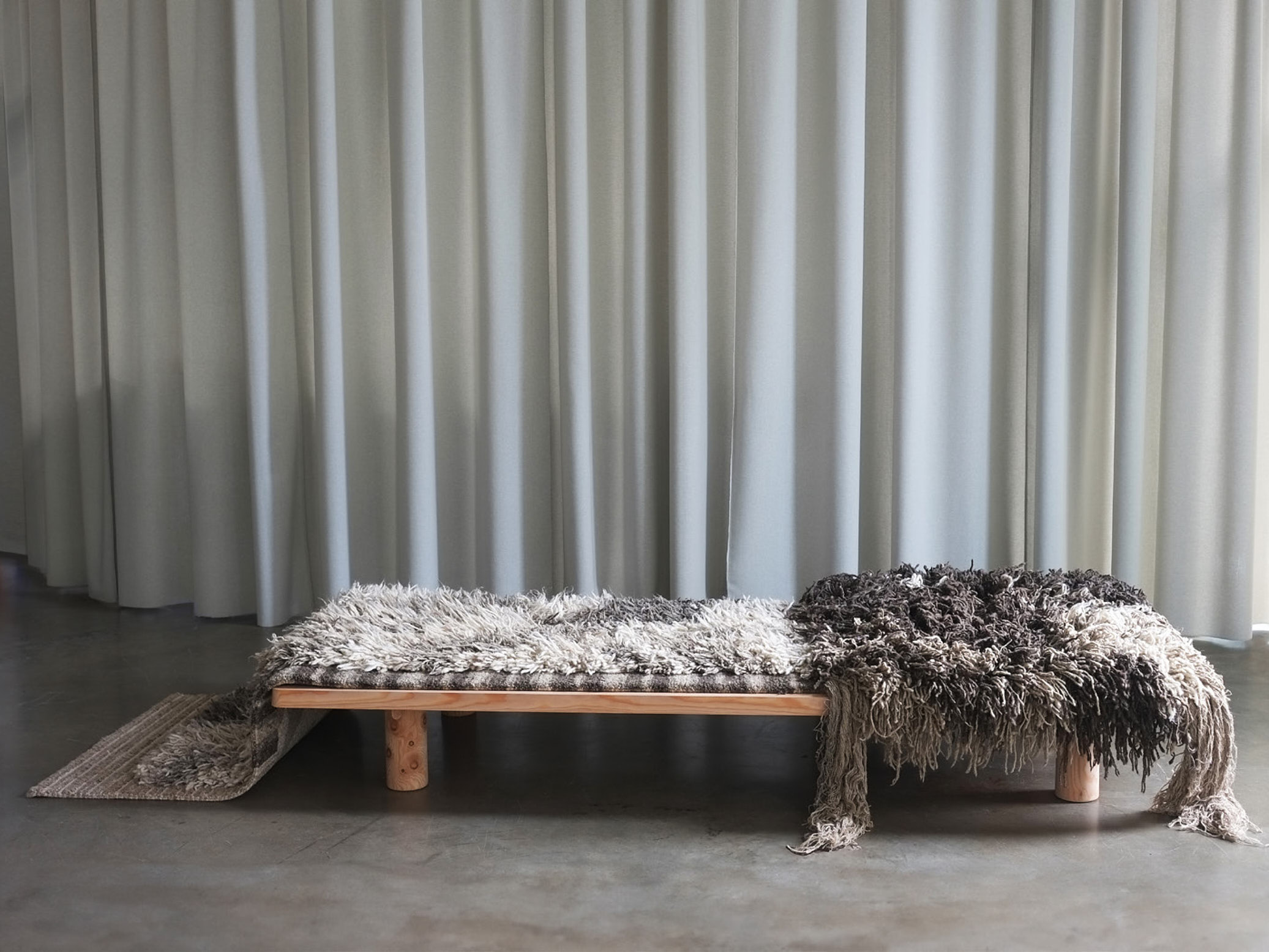Die Arbeit erzählt von Schutz und Isolation, von der Präsenz des Menschen inmitten einer kraftvollen, manchmal bedrohlichen Landschaft. Entstanden sind Einrichtungsobjekte, die dem Zauber des Ortes ebenso begegnen wie seinen Gefahren und seiner Verletzlichkeit.