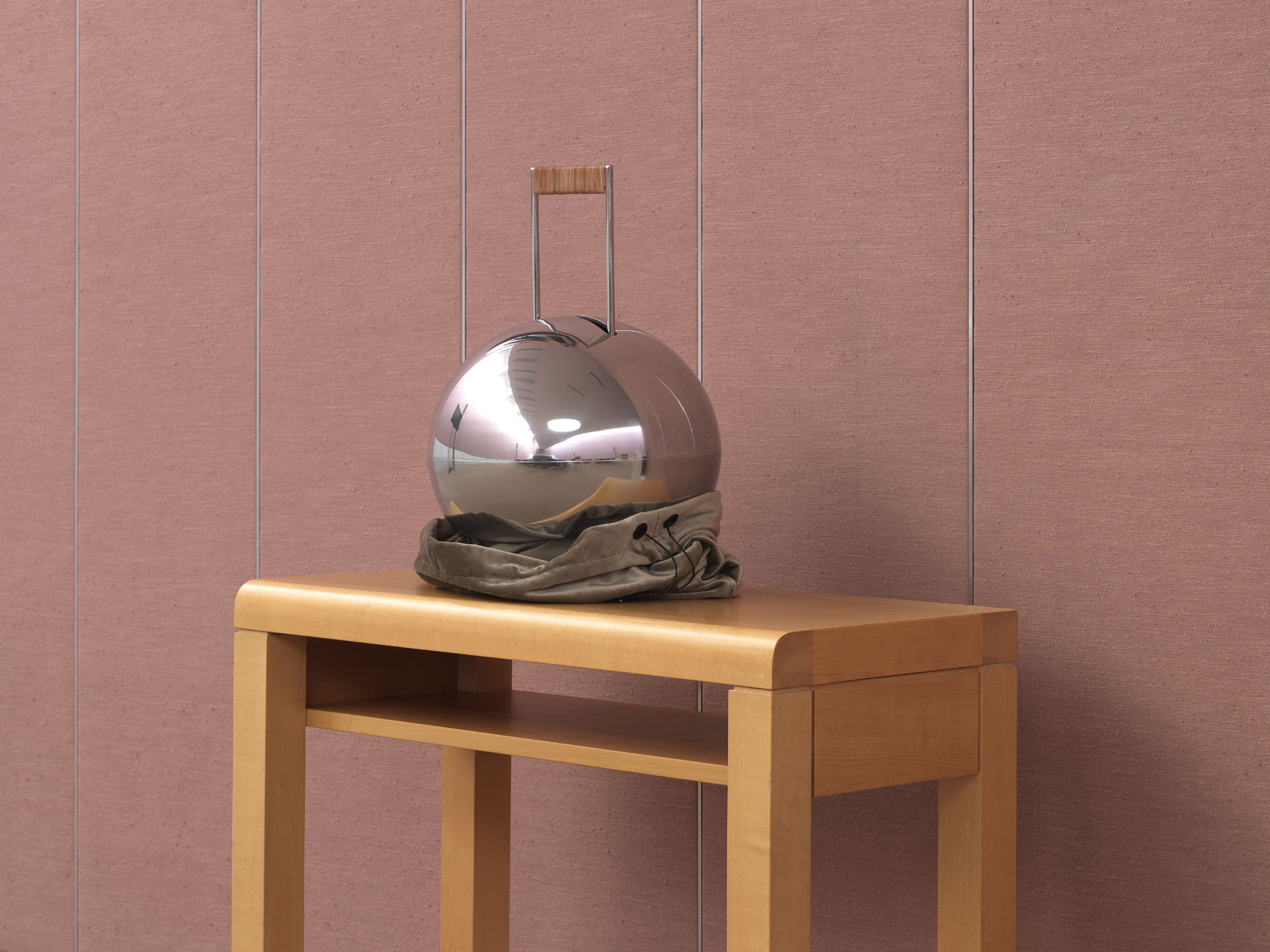 Oberfläche: auf poliertes Aluminium. Sich selbst und den Umraum im Spiegel der